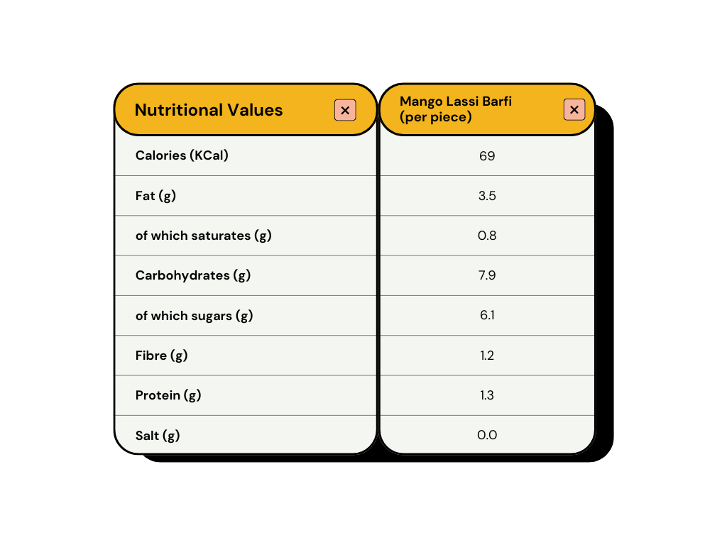 A creamy, mango-infused Indian flapjack that brings the refreshing taste of a mango lassi to life in every bite of our irresistible Mango Lassi Barfi.